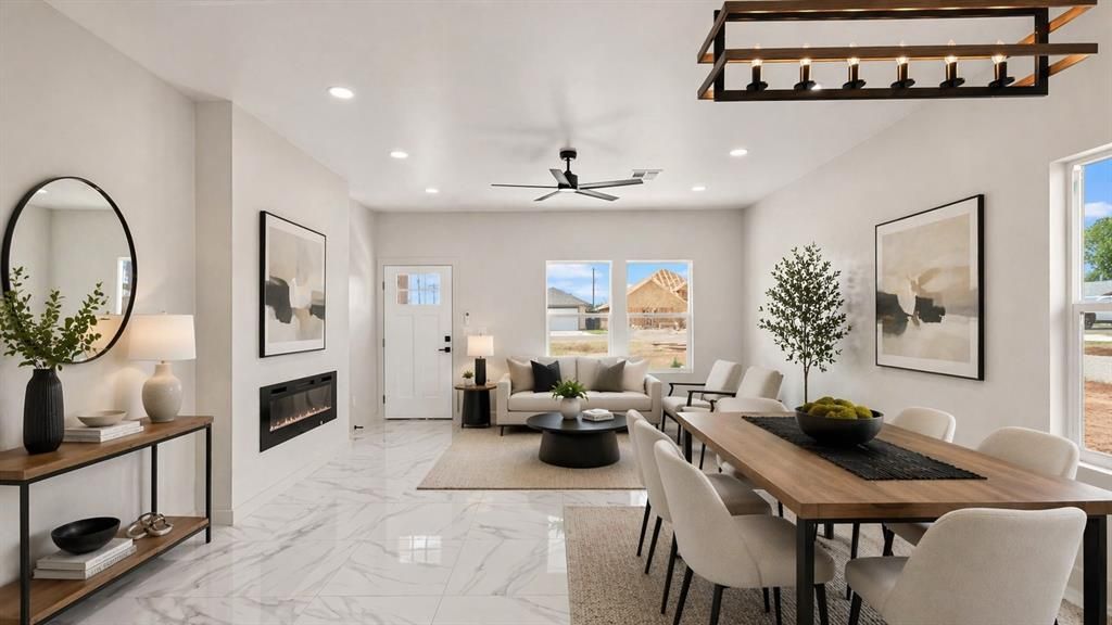 Buying your first home? This one actually makes it feel easy.This brand-new North OKC home has the kind of layout and finishes people are actually looking for right now. When you walk in, the first thing you'll notice is the tile flooring throughout, no carpet anywhere, which keeps everything feeling clean, modern, and easy to maintain.The main living space is open and flows right into the kitchen, so it just makes sense whether you're having people over or just hanging out at home. The kitchen really stands out with a large island, updated fixtures, and a pantry that gives you the storage you'll actually use.The living room feels bright and open with tall ceilings and an electric fireplace that gives it a cozy touch without being over the top. The primary suite is set up to feel like your own space, with a feature wall and a bathroom that has everything you'd want, walk-in tiled shower, soaking tub, dual sinks, LED mirrors, and a closet with plenty of room.You've also got a dedicated laundry room, a true two-car garage, and a covered back patio that looks out over a fully fenced yard, perfect if you've got pets, like to host, or just want a place to relax. The front porch is a nice bonus too, especially for mornings or winding down in the evening.Location-wise, you're just minutes from Topgolf Oklahoma City, Chisholm Creek, Costco, plus major hospitals, shopping, dining, and quick highway access. And being at the end of the street gives you a little extra privacy, which is always a plus.It's modern, it's functional, and it's move-in ready. It just works.